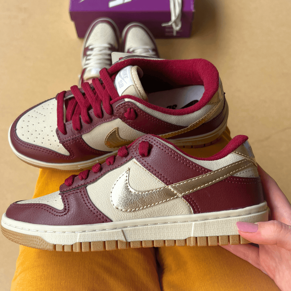 TĂȘnis Nike Dunk SB Bordo Ouro Couro Premium