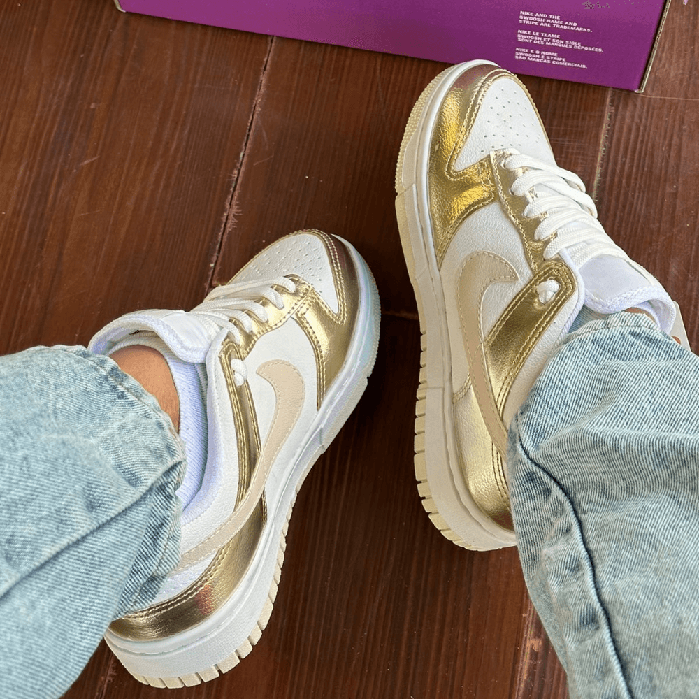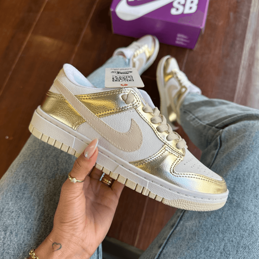 TĂȘnis Nike Dunk SB Branco Ouro Premium